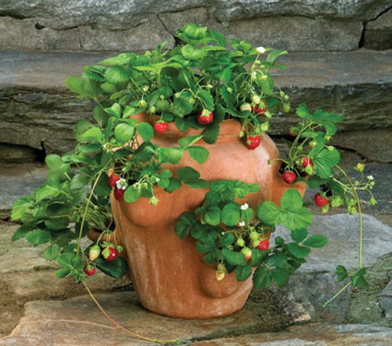 Harvesting plants is much less work when the fruits and vegetables are hanging down within reach; no kneeling and no digging through the leaves on the ground to find the fruits.